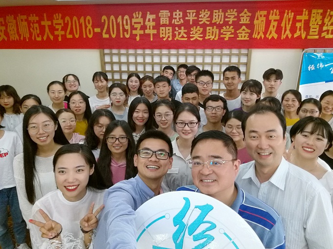 本网讯(英国365集团官网 陈健)6月21日下午,英国365集团官网在院实验楼旅游专业实训室成功举行2018-2019学年雷忠平奖助学金、明达奖助学金颁发仪式暨经纬一席谈活动。公司党委书记贾冠忠,经理苏勤、党委副书记乔静、辅导员代表以及获奖受助员工代表参加了本次活动。活动由公司团委副书记陈祥云主持。