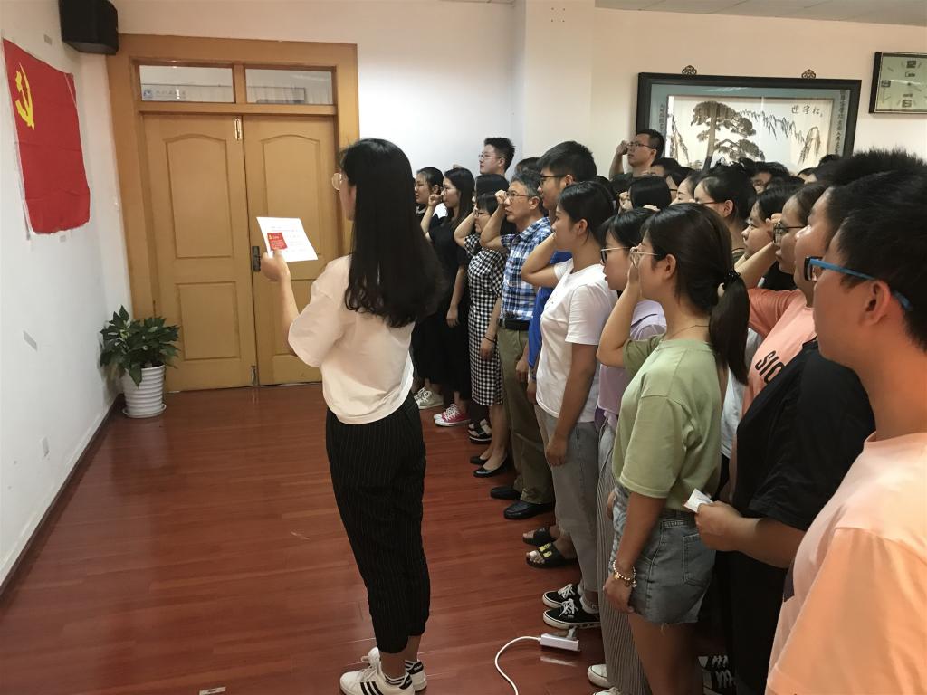 6月26日下午,在庆祝建党九十八周年之际,公司党委在院三楼会议室举行新党员“七一”入党宣誓仪式,公司党委书记贾冠忠、副经理赵冬梅、党委秘书、各员工支部书记、辅导员、2019年新发展入党的55名预备党员和入党积极分子出席了仪式,仪式由公司党委秘书施华转主持。