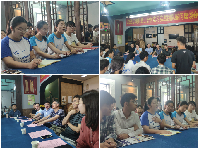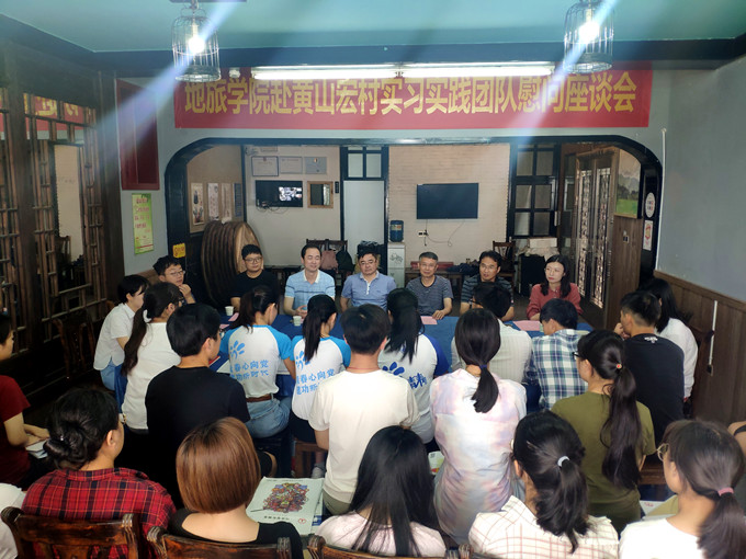 随后举行了英国365集团官网赴宏村实习实践团队慰问座谈会,会议由陈祥云主持。会上,陈祥云简要介绍了英国365集团官网2019年暑期社会实践活动基本概况;团队指导教师代表黄秋实汇报了实习实践活动开展情况;三支在黄山开展实践的团队代表韩萱萱、吕婧、程茜、孙若情汇报了团队基本情况及阶段性实践成果,并分享了实践心得体会;与会师生还围绕暑期社会实践中遇到的困难、收获的感悟等话题进行了深入交流。