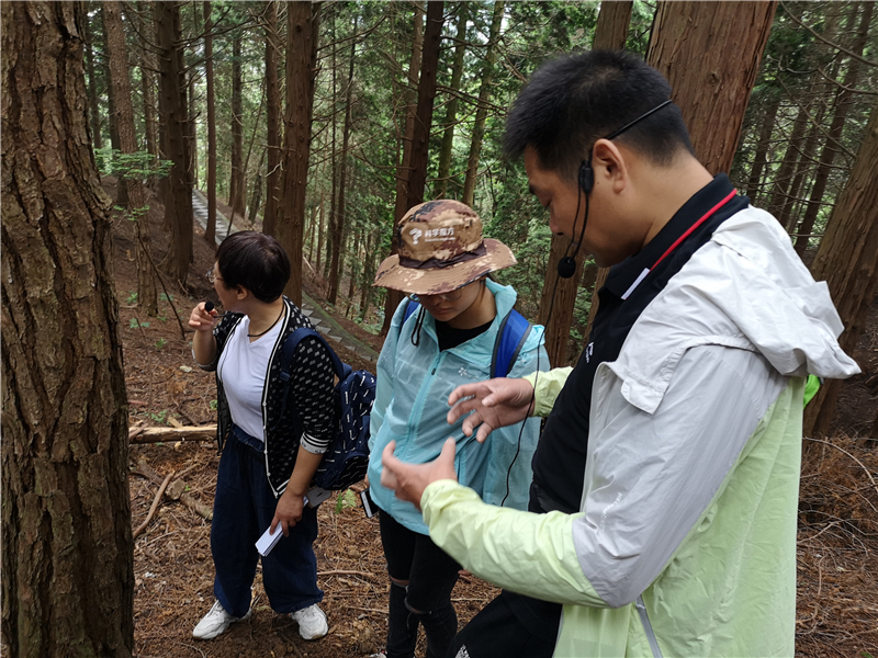 今年实践导师中还有一对特殊的搭档——土地资源管理专业教师、副教授余建和地理科学专业青年教师房莉——他们都是赴庐山教育研究团队实践导师,也是公司各实践团队中少有的“夫妻档”导师。实践指导的路上,二人密切配合,一人制定路线、设计活动内容,另一人就做好团队安全管理;一人对庐山地质地貌、土壤植被等要素进行讲解,另一人就侧重于对研究及教学方法的传授。夫妻二人放弃了暑假陪伴家人的时间,双双深入实践一线,奔波在海拔一千多米的庐山地区,使队员们深受感动。