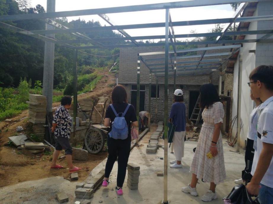 (摄于2019年8月7日上午,图为黄尾村基地队员实地考察中心村建筑风貌)