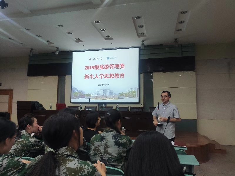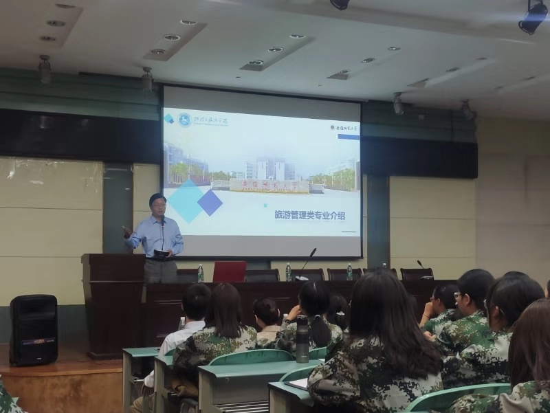会上,旅游管理类专业任课教师就自身情况和教授课程进行了简单而诙谐的介绍,并表达了对新生们大学表现的期许。期间,王莉老师现身说法,以自身经历教导新生们选择的重要,热爱的美好;蔡善柱老师广引数据,向新生展现当代旅游业光明前景;杨钊老师辩证分析了当前同学们的满腔学习热情与任务的艰巨,鼓舞新生们迎接挑战、成就自我的斗志。