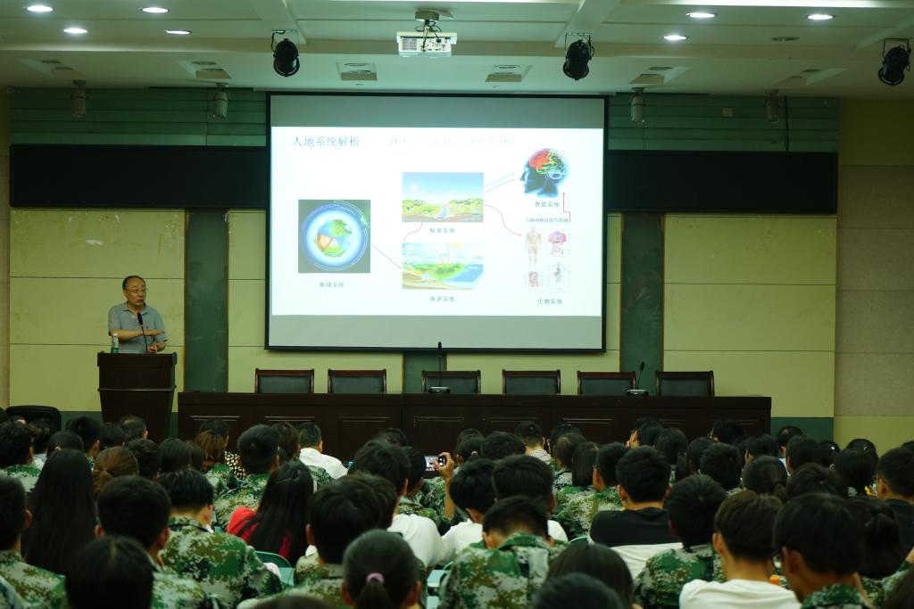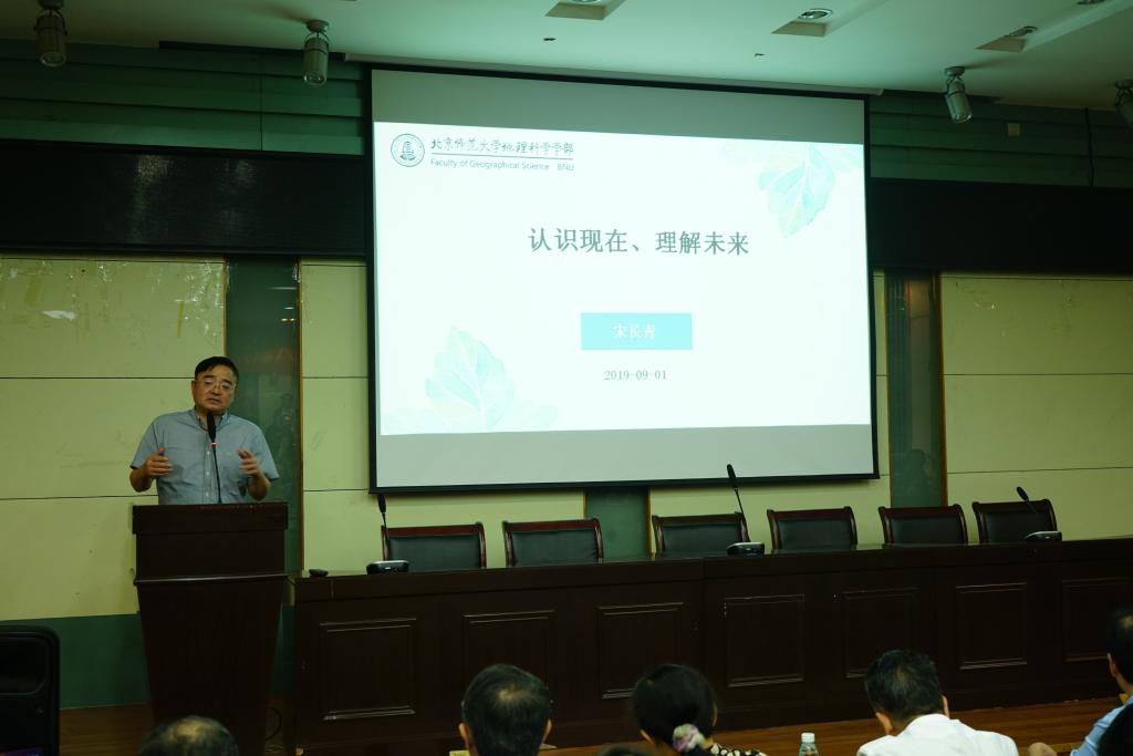 面对2019级地理学新生,他向同学们提出四点把握:把握你的选择、把握你的运气、把握你的机会、把握你的时光。珍惜时光、努力学习,成为更好的自己。并指出地理学在指导人生中的作用。在把握时代部分,他谈到,地理学子要了解小世界,理解大时代,认识新机遇、创造真未来。现在是智能时代、移动时代,地理学要紧扣时代脉搏,不断进步发展。