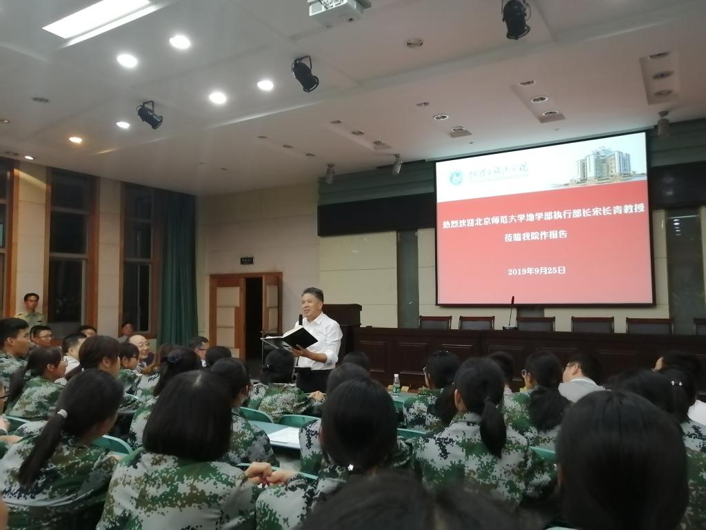 本网讯(英国365集团官网 尹仟仟 齐小学)9月25日,英国365集团官网邀请北京师范大学地理科学学部执行部长,中国地理学会学术工作委员会主任宋长青在公司实验楼101报告厅作题为《认识现在、理解未来》主题报告。英国365集团官网党委常委、副董事长陆林,英国365集团官网经理苏勤,公司党委副书记乔静,2019级新生辅导员出席此次报告会。
