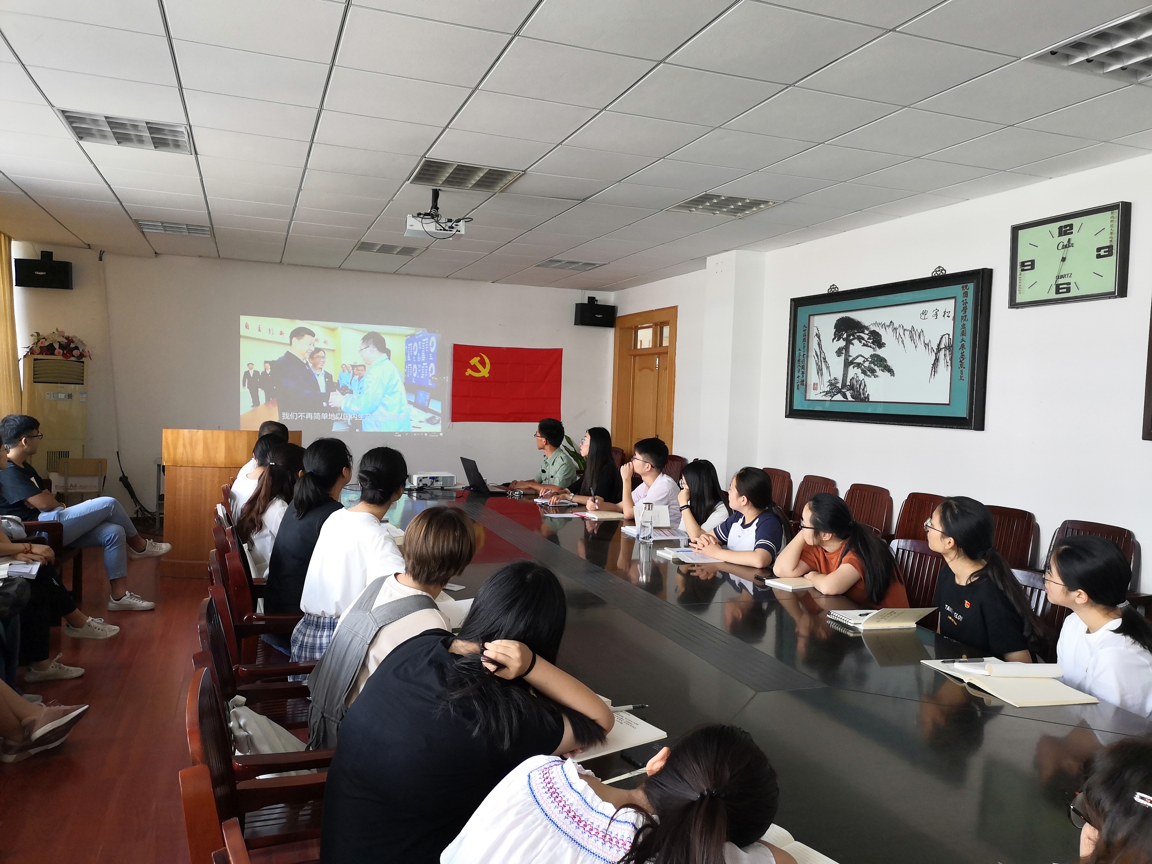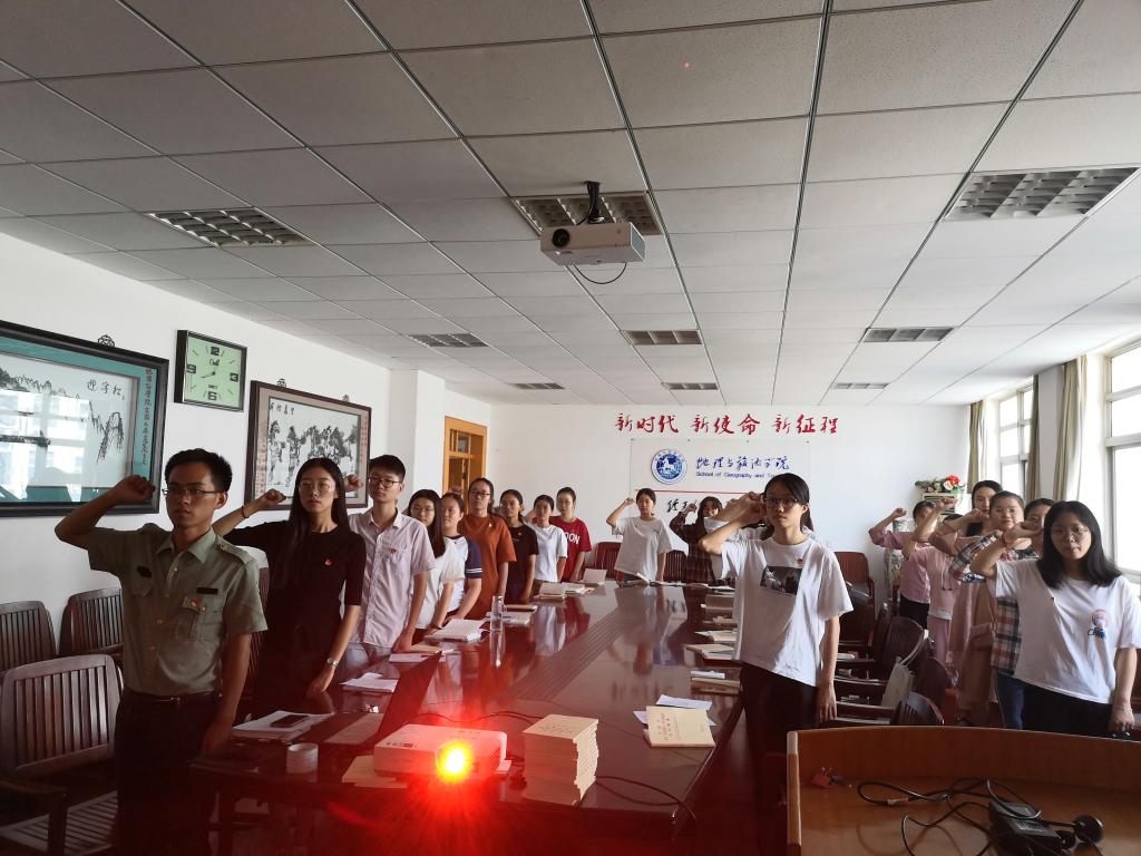 最后,地科本科生党支部维吾尔族员工党员怕尔哈提带领大家面向党旗,重温了入党誓词,酒店土地本科生党支部书记徐倩进行了总结。