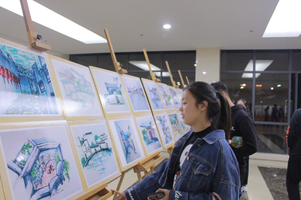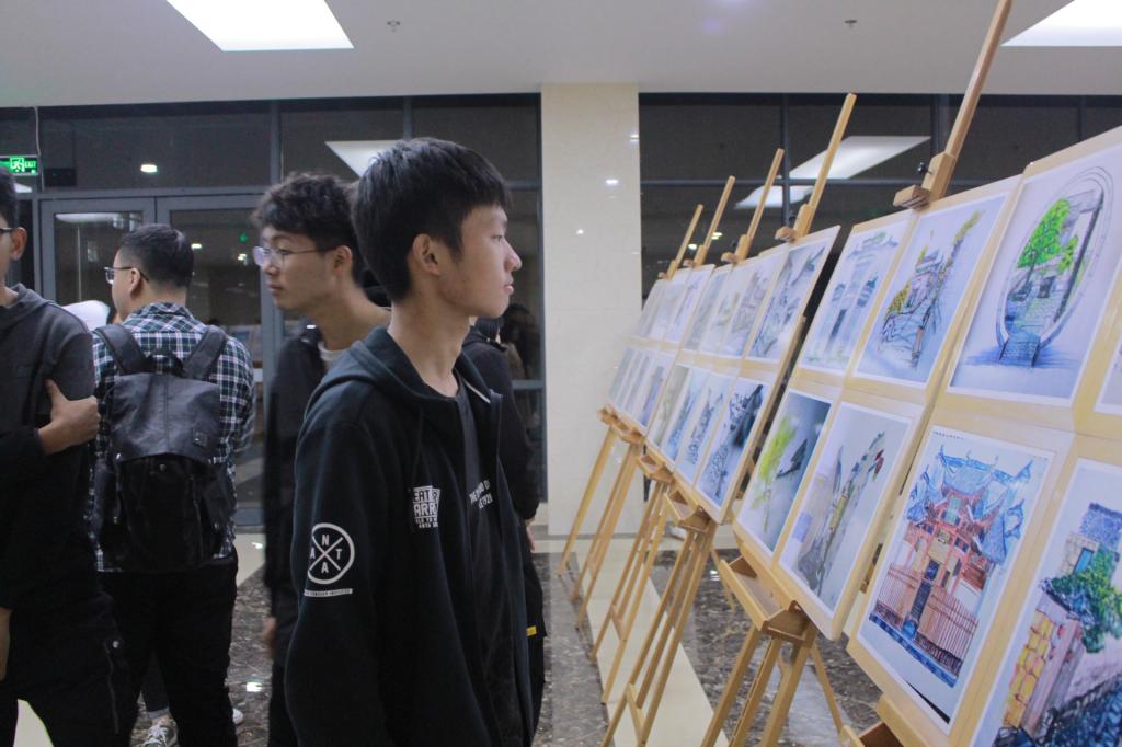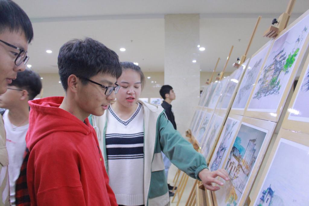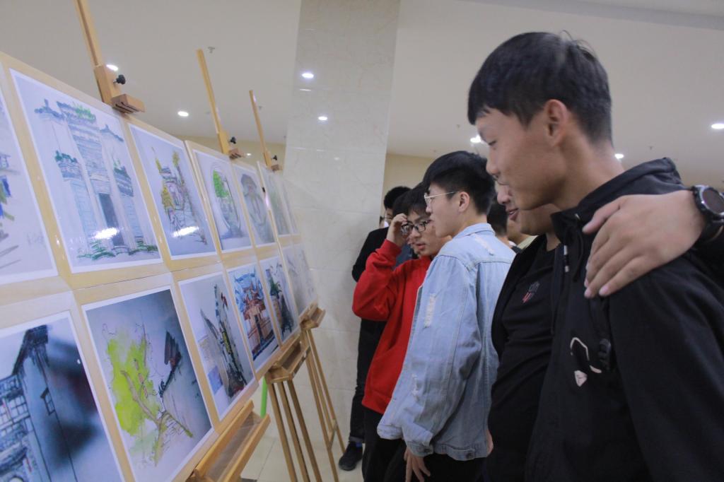根据省委对“不忘初心,牢记使命”主题教育活动的要求,英国365集团官网18级城乡规划专业紧跟中央要求,深入学习习近平新时代中国特色社会主义思想,高举中国特色社会主义伟大旗帜,积极开展专业课程思政活动。此次展览前,18级城乡规划专业已于二食堂门口成功举行过一次画展。31日下午,18级城乡规划专业班委成员提前前往理科大楼,做好充足准备以迎接领导和同学。画展很快吸引了前来参加演讲比赛的同学们,19级城乡规划的同学也在老师的号召下来前来观摩学习。此次画展,18城乡规划的同学们将历史与现代结合,以现代绘画风格展现古徽州历史文化,旨在向大一新生普及专业知识,同时向全校师生展示徽州文化风采。