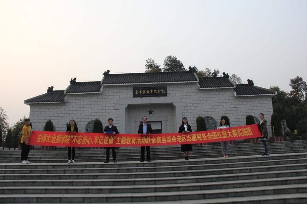 公司党委副书记乔静、团队指导教师尹寿兵、团委书记陈祥云、辅导员黄世彤一行赴金寨为团队指导、慰问志愿者和礼仪队成员。并借大赛在革命老区金寨举办之际,组建“不忘初心、牢记使命”主题活动赴金寨县革命老区志愿服务全国红旅大赛实践团,于赛后前往金寨县革命烈士陵园开展主题教育活动。