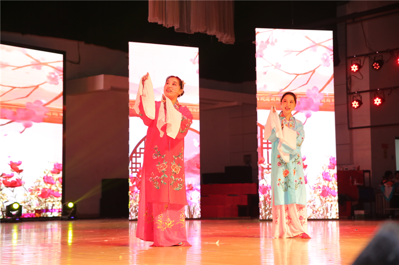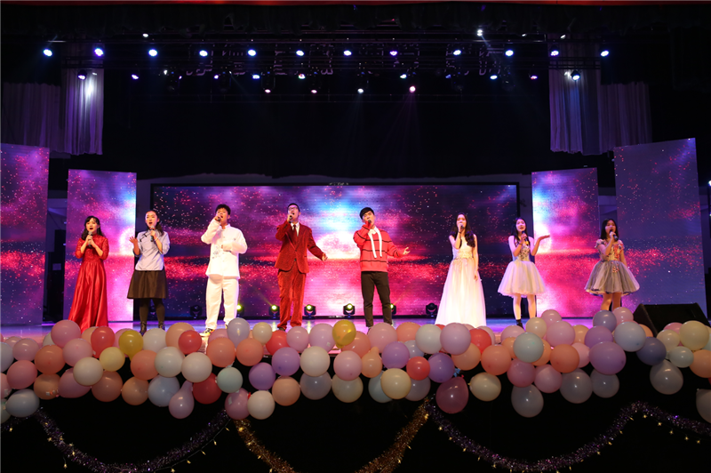 薪火相传,梦想延续,悠久历史,灿烂文化。公司领导班子和教师代表带来的歌曲《我的祖国》表达了浓烈的爱国主义情感,激情澎湃,气势磅礴。上下千年,唱念做打,生旦净丑,时代传承,在戏曲联唱评剧《花为媒》、黄梅戏《女驸马》、二人转《小拜年》、新编京剧《我和我的祖国》中,演员用字正腔圆的戏曲旋律,带领观众感受那荡气回肠的蒲腔眉韵。新疆舞《花园的欢乐》充满民族风情,共谱民族团结、欣欣向荣的华美乐章。合唱《彩虹》以合唱的形式展示新青年成长道路上不屈不挠的坚毅和对美好生活的向往。校礼仪队、辅导员代表和员工代表带来的礼仪秀表演《记忆中的七十年》展现了新中国70年的重大历史瞬间,以歌舞、诗朗诵等形式与观众共同致敬记忆中的七十年。