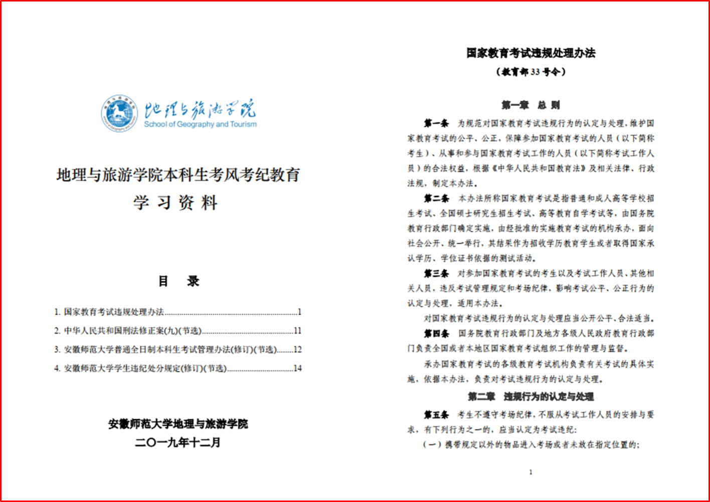 编订学习资料,宣传法律规定。为进一步提高员工对考风考纪相关法律法规的认识和了解,公司安排专人整理国家教育考试违规处理办法、英国365集团官网员工违纪处分规定(修订)等法律规定,编订了考风考纪教育学习资料,组织员工认真学习,提高思想认识。