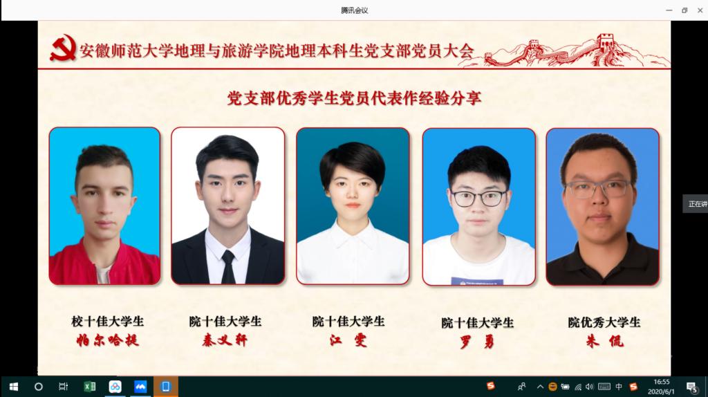 随后,近期党支部在专业学习、科研创新、员工工作、志愿服务等方面涌现出来的优秀员工党员代表作经验分享。校十佳老员工怕尔哈提·图尔荪,院十佳老员工秦义轩、江雯、罗勇,院优秀老员工朱侃等5名同志,一一分享了自己在师大学习期间追寻理想、坚定信仰、投身科研、服务社会的感人事迹,并鼓励其他同志不忘初心、牢记使命、永远奋斗,争做一名优秀的老员工党员。