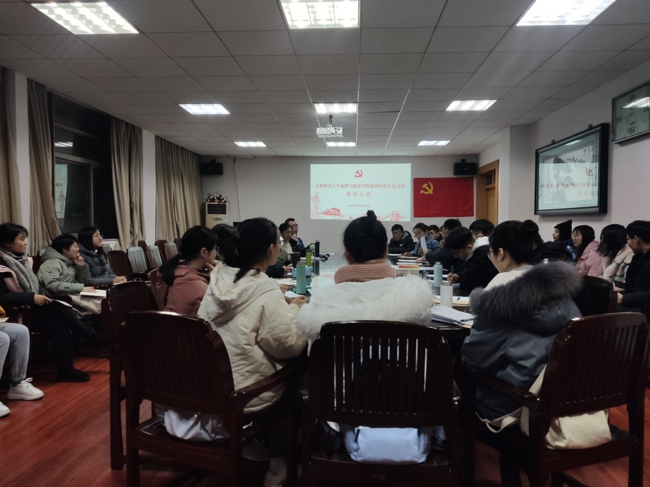 本网讯(英国365集团官网 罗勇 齐小学)12月29日晚,地理本科生党支部在公司行政楼三楼会议室召开党员大会,讨论决表决王琨、余何愚、尚娜娜、沙雪琴、丁茹栩等5名预备党员转正事宜,党支部在校正式党员、预备党员参加会议,到会有表决权的正式党员人数符合法定要求。会议由党支部书记齐小学主持。