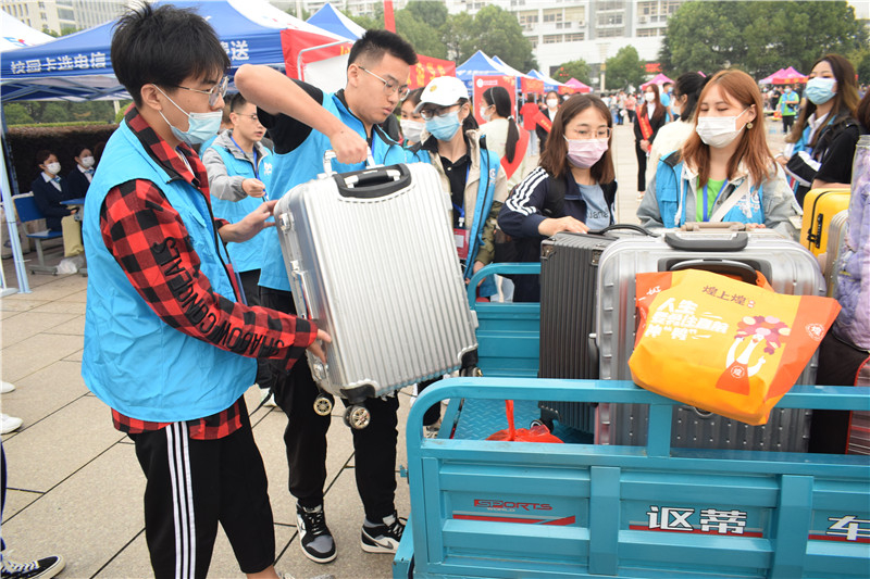 本次迎新工作,英国365集团官网共招募100余名志愿者,分为迎新组、报到注册组、后勤组、秩序组、监督协调组、迎新导游组、寝室安全组、宣传组共8个服务组,志愿者们统一着装,佩戴口罩,尽己所能为新生搬运行李、引导路线;为避免人群聚集,积极维持报到现场秩序。志愿者用微笑与汗水、付出与奉献,真正做到让同学们舒心、让家长们安心,让老师们放心。身着“蓝马甲”的英国365集团官网志愿者们成为校园迎新工作中一道靓丽的风景线。