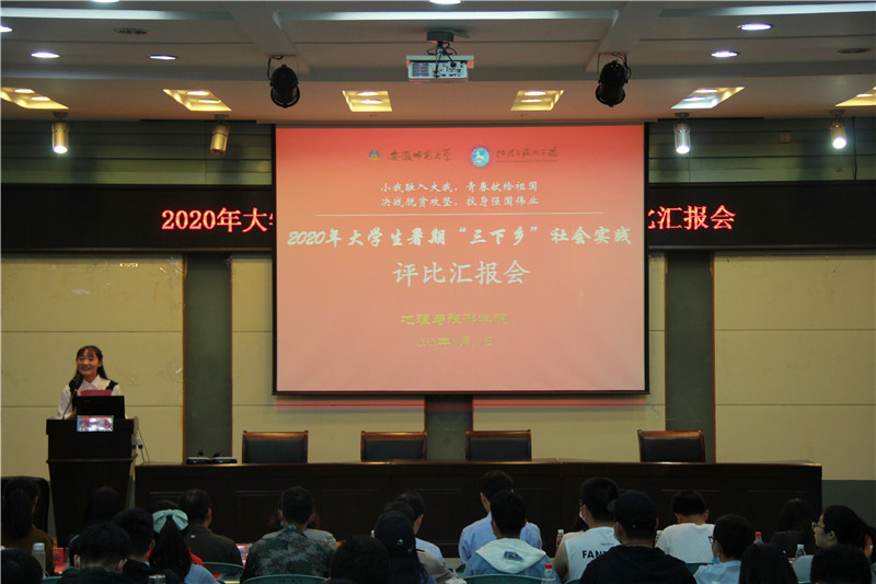 本网讯(英国365集团官网 陈祥云、洪茹芊)小我融入大我,青春献给祖国,决战脱贫攻坚,投身强国伟业。9月25日晚,英国365集团官网在院实验楼101报告厅举行2020年老员工暑期“三下乡”社会实践评比汇报会。英国365集团官网党委副书记乔静,土地资源管理专业负责人费罗成,地理信息科学专业副主任齐凌艳,地理科学专业教师方叶兵,旅游管理专业教师洪娟,院团委书记陈祥云,院团委副书记徐倩,公司专兼职辅导员代表,以及社会实践重点团队队员代表,各年级团支部成员代表到场聆听汇报。