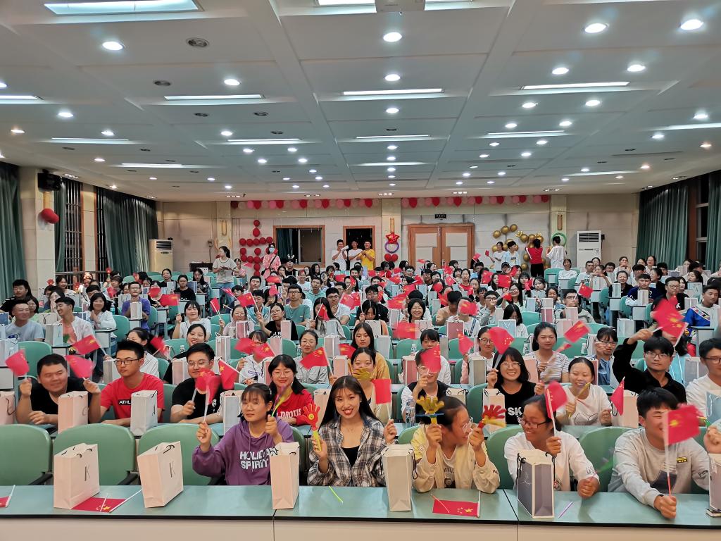 除了精彩纷呈的节目,现场互动环节也是好戏连台,萝卜蹲、你有我没有等游戏也让同学们成为了晚会的主人,大家踊跃上台参与游戏,现场温馨且融洽。“我和我的祖国,一刻也不能分割...”伴随着全体师生摇着国旗大合唱《我和我的祖国》,本次晚会也进入最高潮,“我和我的祖国,一刻也不能分割,无论我走到哪里,都流出一首赞歌...我最亲爱的祖国,我永远紧依着你的心窝,你用你那母亲的脉搏,和我诉说,我最亲爱的祖国,你是大海永不干涸,永远给我碧浪清波,心中的歌!”全场观众热情饱满、激情昂扬的共同用歌声为祖国母亲庆生,歌唱祖国繁荣富强,国泰民安!神州大地,举国欢庆,江山不老,祖国长青,祝愿伟大祖国繁荣昌盛,愿师大学子长风破浪会有时,直挂云帆济沧海!