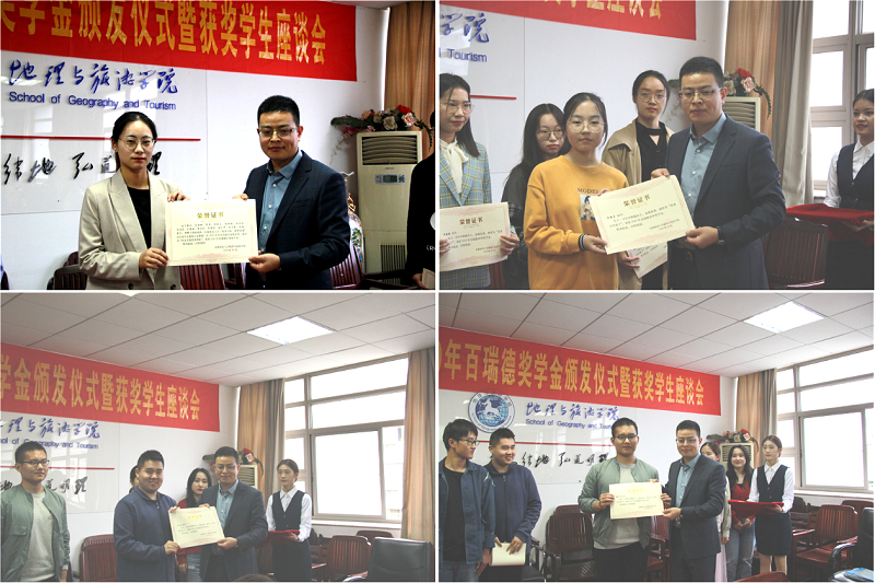 贡植斌宣读了首届百瑞德奖学金颁发决定,并由程伟为获奖个人及团队颁发荣誉证书。颁发仪式结束后,获奖员工及团队代表上台发言。2017级城乡规划专业杨凯同学提出,自己将继续“潜心修学练就过硬本领,脚踏实地奉献无悔青春”;2017级地理科学专业高宇凡同学表示,自己将坚持“夯实基础,严谨负责,完善自我,服务社会,做有理想、有担当的青年人”的理念;“情系川皖,圆梦巴蜀”山区留守儿童线上支教团承诺,支教行动将薪火相传,与山区孩子们一同成长;“基于大数据的城市内部情感旅游流时空模式”调研团队结合当下实际情况做出了精彩的汇报展示。