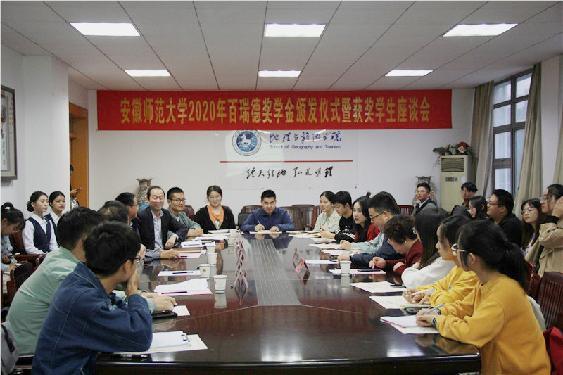 签约仪式结束后,颁发仪式暨交流分享座谈会于院行政楼三楼会议室举办。乔静介绍了百瑞德奖学金主要概况,并指出该项奖学金设立将鼓励员工积极投入社会实践和公益事业,支持员工骨干德智体美劳全面发展,激励他们努力学习,立志回报国家和社会,成为时代新人。