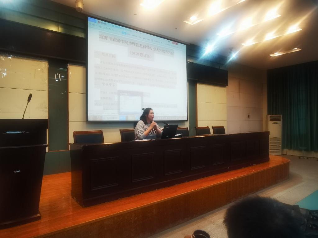 会议第二项,由齐凌艳老师向同学们介绍《英国365集团官网地理科学专业(非师范)人才培养方案》。齐老师首先通过大家身边的GIS应用激起了同学们的兴趣,其次向大家详细介绍了培养目标、毕业要求、学制与毕业学分、核心课程以及教学时间安排等具体内容。同时,齐老师还通过列举一些学长学姐的经历来向大家介绍了选择GIS专业后需要学习的专业课程以及一些较难的例如C++等课程,希望同学们学习时不畏惧不抵触,并指出任何一门课程都会在日后对同学们带来帮助,成为辅助我们成长成才的好工具。非师范的方向后期会培养同学们的能力,同学们会具有空间数据采集、处理、分析,运用数学建模方法和计算机技术,解决实际问题的能力,具有GIS组件式系统开发的基本能力;接受良好的科学思维和科学方法的基本训练,具有资料搜集和文献检索等能力,具有创新意识及团队协作的能力和在教师指导下初步开展科学研究的能力;会熟练掌握一门外语,具备国际视野和口语与书面表达能力,具有较强的自主学习能力、环境适应能力、自我发展能力和组织管理能力。由此可见,选择非师范也是一个极好的方向。