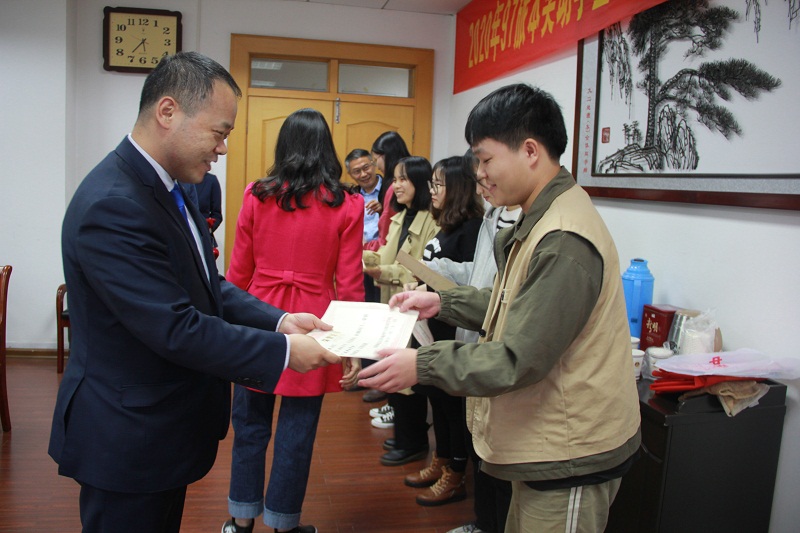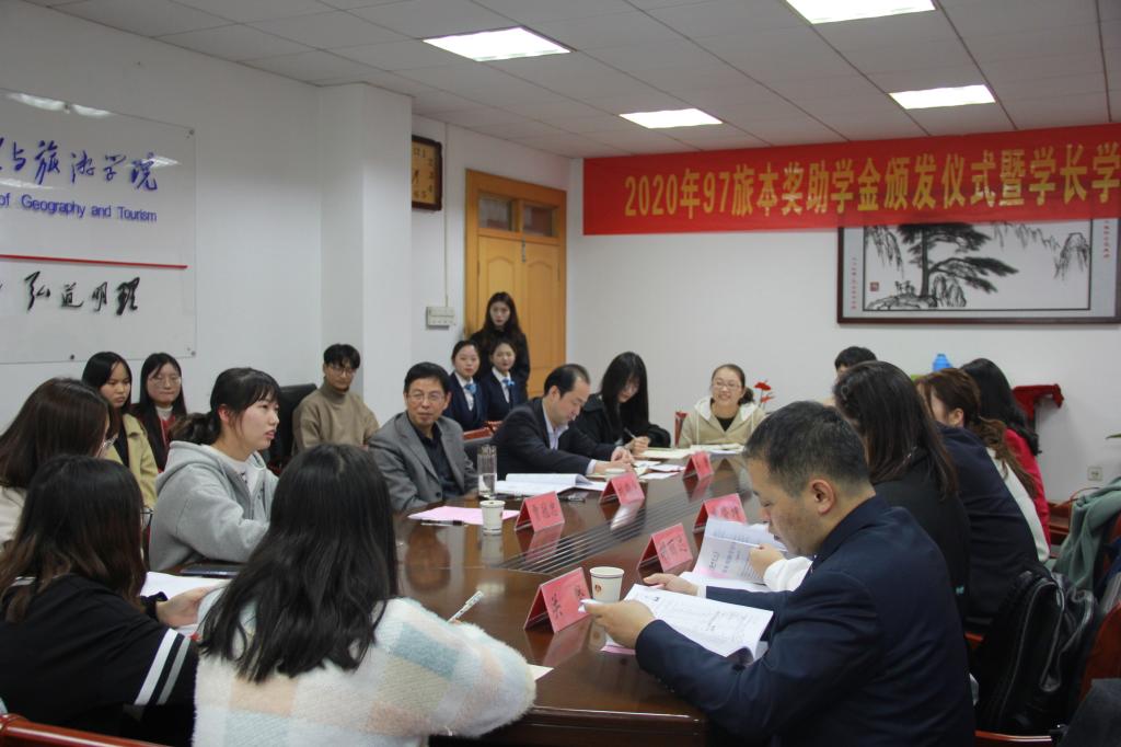 会议伊始,乔静对与会的领导嘉宾表示热烈欢迎,并介绍了97旅本奖助学金的设立背景和发展历程。随后,刘晓宇宣读颁发决定,并宣读获得本年度97旅本奖助学金的人员名单。颁奖仪式环节,1997级旅游管理专业本科班毕业员工代表与刘晓宇、贾冠忠分别为王星等12名获奖受助同学颁发获奖受助证书。