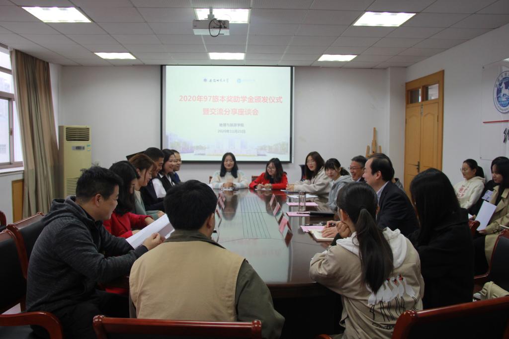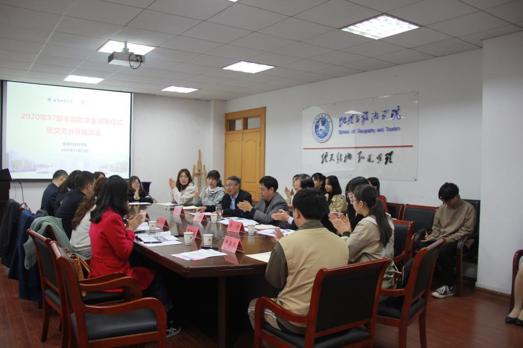 分享会上,获奖受助代表2017级地理科学专业王星、2018级旅游管理专业蔡淑玉、2018级地理科学(师范)专业尹仟仟、2018级酒店管理专业胡燕先后分享了她们的青春奋斗故事。“以梦为马,把握当下,不负韶华”,作为获得97旅本奖学金的优秀地旅学子,王星表示,虽然自己在专业学习上取得了一些成绩,但自己绝不会自满,将继续刻苦努力学习,抓住每一次参与科研和社会实践的机会不断提高自己的综合能力,做知行合一的地旅人;荣获97旅本奖学金的蔡淑玉以“在奋斗中闪光”为题汇报了自己的学习成长经历,并表示要不断累积学习经验,做到饮水思源,学成毕业后要胸怀爱国爱校之情,尽己所能回报社会;“玉汝于成,芳华无限”,获得97旅本助学金的尹仟仟在发言中汇报了自己克服经济困难、自强自立学习奋斗,成为员工工作和志愿服务骨干的励志经历;获得97旅本助学金的胡燕从学习、思想、实践、所获奖项等方面介绍了自己的所学所思所悟。四位获奖受助员工代表讲述自己的成长故事,抒发了对公司公司和97旅本学长学姐们的感激之情,纷纷表示自己今后将努力学习、积极生活,毕业后力所能及地回馈社会,感恩母校,传递爱心。