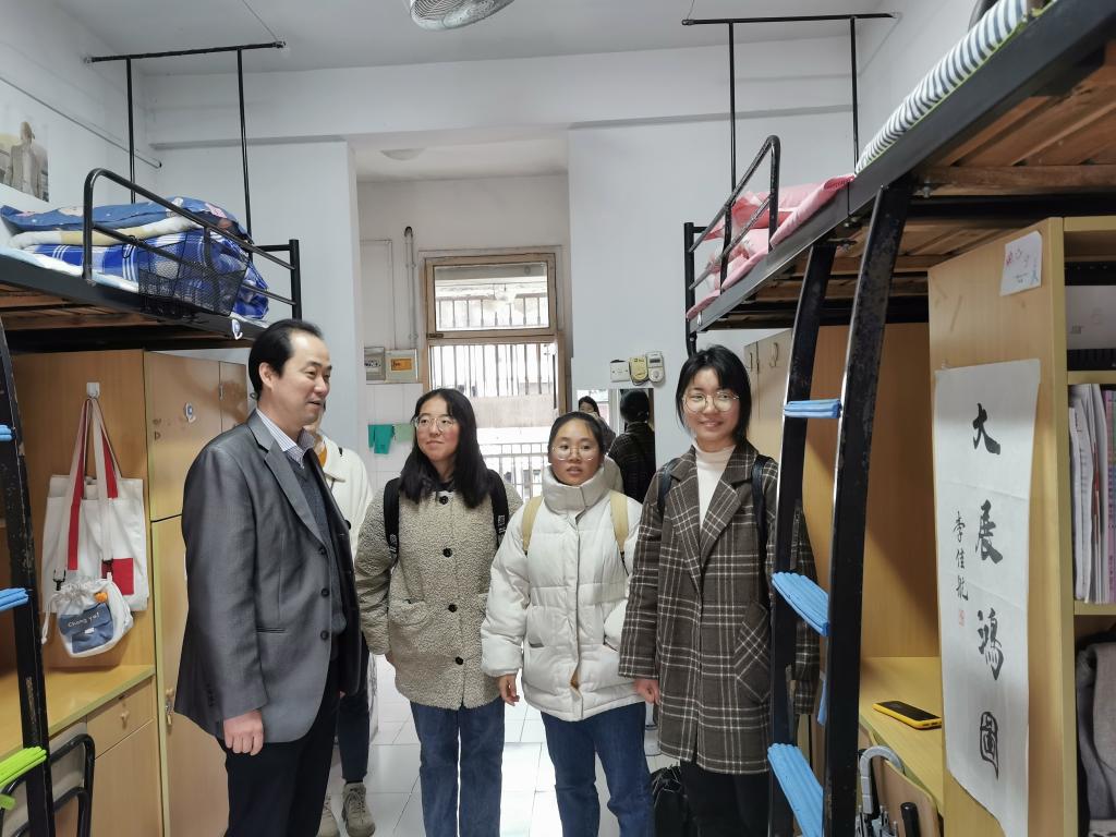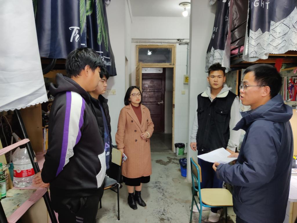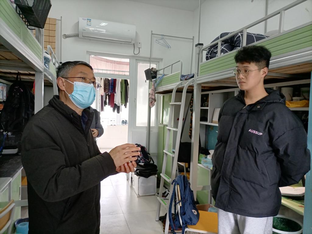 乔静在此次安全卫生检查中重点走访了大四年级宿舍,并就宿舍可能存在的安全隐患及卫生状况进行了现场督察,对同学们在疫情防控常态化下坚持进行晨午晚体温监测提出了表扬。同时在与毕业班同学的亲切交谈中了解他们的毕业去向以及最后几个月在校的安排,鼓励同学们积极就业,强调站好最后一班岗,希望同学们对未来有目的有规划,为理想而不断奋斗。