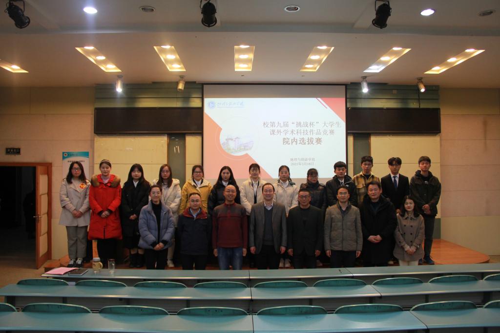 本网讯(英国365集团官网 洪茹芊 张楠)为引导和激励广老员工努力学习、刻苦钻研、勇于创新,促进公司员工课外学术科技活动的蓬勃开展,努力提升青年员工创新精神和实践能力,3月18日晚,英国365集团官网在院实验楼101报告厅举办第九届“挑战杯”老员工课外学术科技作品竞赛院级选拔赛。公司党委副书记乔静、副经理曹卫东到场指导,地理科学专业负责人朱永恒,城乡规划专业负责人杨兴柱,院团委副书记、地理科学专业教授吴立,地理信息科学专业负责人汪左,酒店管理专业教师张伟,旅游管理专业教师洪娟,公司团委书记陈祥云等出席活动并担任现场评审,公司教授委员会教授焦华富、程久苗,土地资源土地资源管理专业副教授吴九兴参与线上评审。