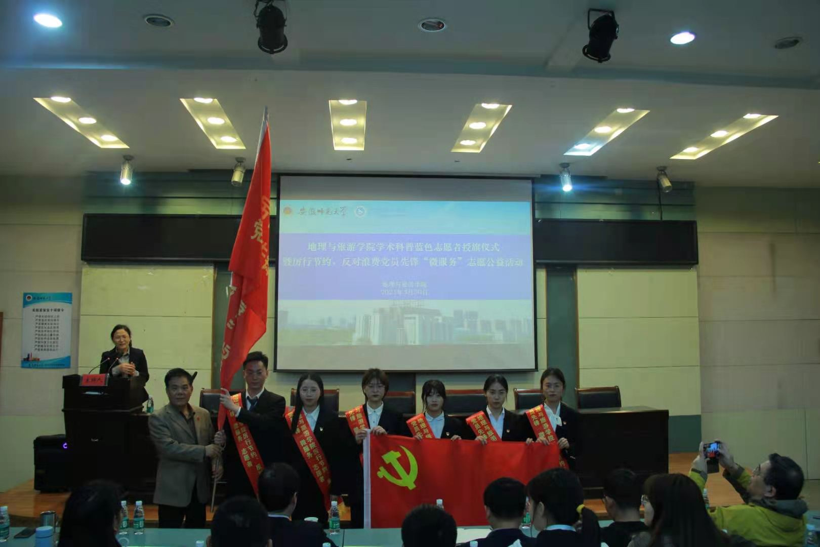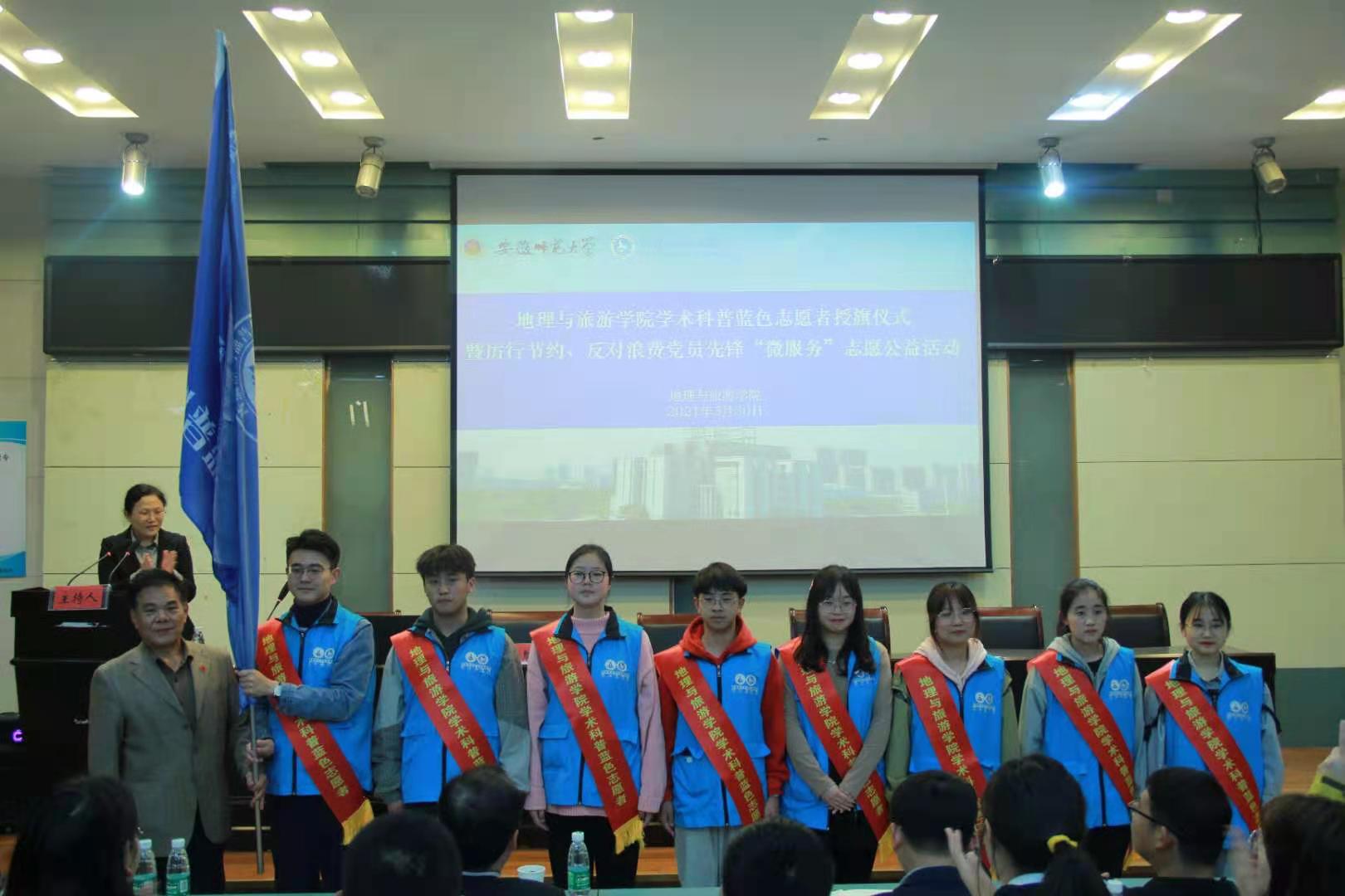 本次论坛,英国365集团官网“学术科普蓝色志愿者”和“厉行节约、反对浪费党员先锋‘微服务’志愿者”负责全部引领、服务、接待等志愿服务工作,为论坛的圆满举办做出了贡献。30日晚,在英国365集团官网实验楼101报告厅举办学术科普蓝色志愿者授旗仪式暨厉行节约、反对浪费党员先锋“微服务”志愿公益活动,中国科公司地理科学与资源研究所研究员、中国自然资源学会理事长成升魁为志愿者授旗。