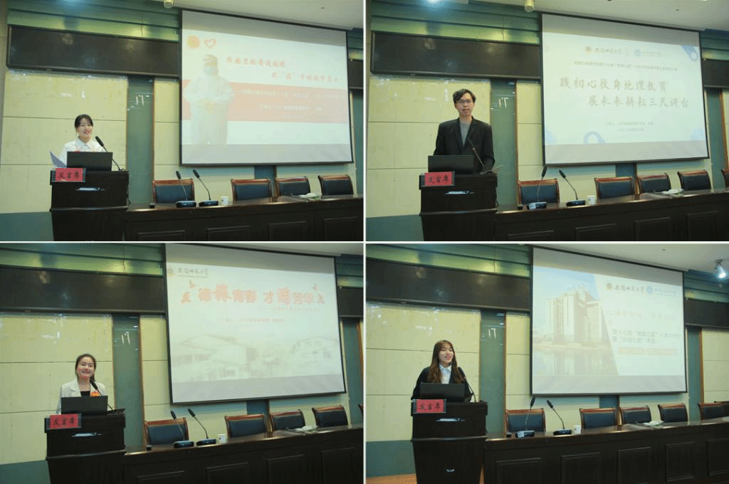 2018级土地资源管理王睿涵跟随榜样,努力奋斗,获得全国老员工自然科技作品大赛、全国老员工土地国情调查大赛三等奖;2018级旅游管理专业的高昕茹聚焦乡村旅游业的发展,助力乡村振兴;2017级旅游管理的朱阔阔勤学慎思,奉献友爱;2018级酒店管理的董倩倩脚踏实地,期望未来,坚持勤工助学,自立自强;2018级地理信息科学专业的丁雅欣积极入党,立鸿鹄志,做奋斗者,获得全国老员工GIS应用技能大赛特等奖;2019级地理信息科学专业的褚超群提高个人能力,踏踏实实筑好根基;2018级土地资源管理专业的孔学融连续两年专业排名第一,获全国老员工英语竞赛国家级特等奖;2017级地理科学专业的朱侃践初心投身地理教育,展未来耕耘三尺讲台;2018级城乡规划专业的潘爽立足专业,厚积薄发,获得全国高等院校老员工乡村规划方案竞赛省级三等奖、全国优胜奖;2019级旅游管理专业的鲍格格坚定理想信念,一心钻研,拼搏向前……他们分别从学习、工作、实践、生活、志愿服务等方面,讲述了他们在师大成长的故事,充分体现了地旅学子奋发向上、朝气蓬勃的精神样貌以及顽强拼搏的意志,为同学们树立了优秀榜样。