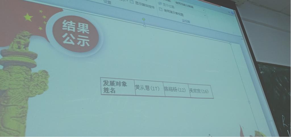 大会共分为三个部分,首先党支部书记曹雨就到场情况及投票规则做了简要说明,宣读公司入党的基本流程和发展对象的评价标准,公布发展对象名额,公布本次推优大会的候选名单。本次大会的候选人员有金院、黄从慧、吴倩倩等8名候选人,总共选举3名发展对象。表示本次投票为无记名投票,表明整个投票过程将会公平公正公开,每人可以选择3位入党积极分子进行投票,超过3人视为废票。其次是入党积极分子进行自我汇报,八位候选人分别就其参加的集体活动,为群众服务工作等内容进行汇报,结合自身的实际情况表达了自己对加入中国共产党的决心和强烈愿望。同时参会的正式党员结合候选人现场情况对候选人进行投票。最后现场统计公布各位候选人的票决情况,对票决结果进行公示。最后,根据最终结果,拟推荐黄从慧、吴倩倩、陈铭杨为本期发展对象。