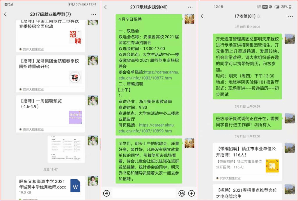 班级是员工日常活动的主体,依托主题班会、班级工作群等“两微一端”工作载体,对员工开展求职就业技能培训,实时动态更新推送就业信息,打通员工与就业咨询的桥梁,做到精准推送就业信息,提高员工就业的积极性,提高求职成功的命中率。