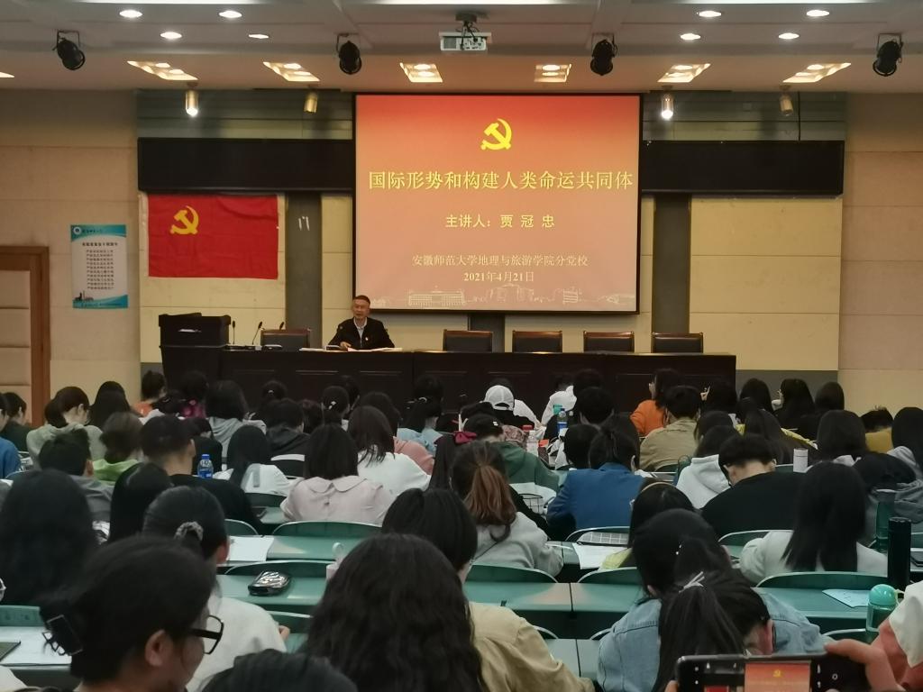 本网讯(英国365集团官网 尚子仪 齐小学)4月21日下午,英国365集团官网分党校第10期员工党员教育培训班、第61期老员工入党积极分子培训班在实验楼101报告厅如期展开,公司党委书记贾冠忠为学员们作了题为“国际形势和构建人类命运共同体”的专题党课,全体参训学员参加培训,党课由副班主任齐小学主持。