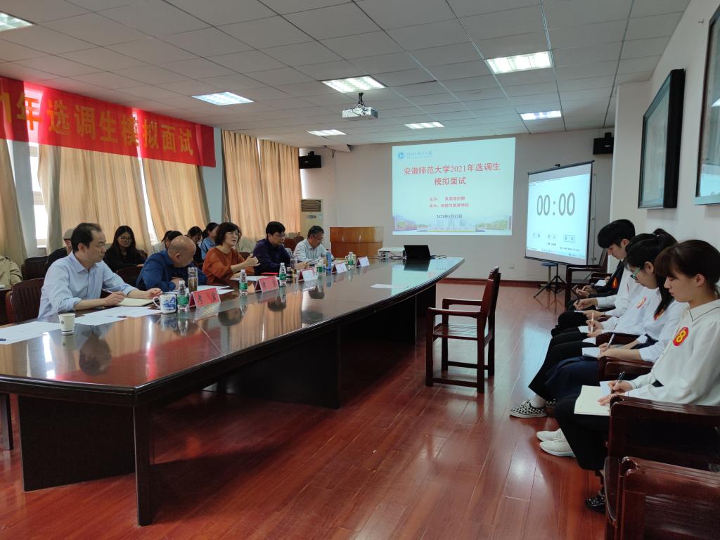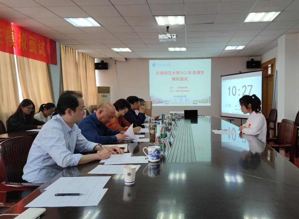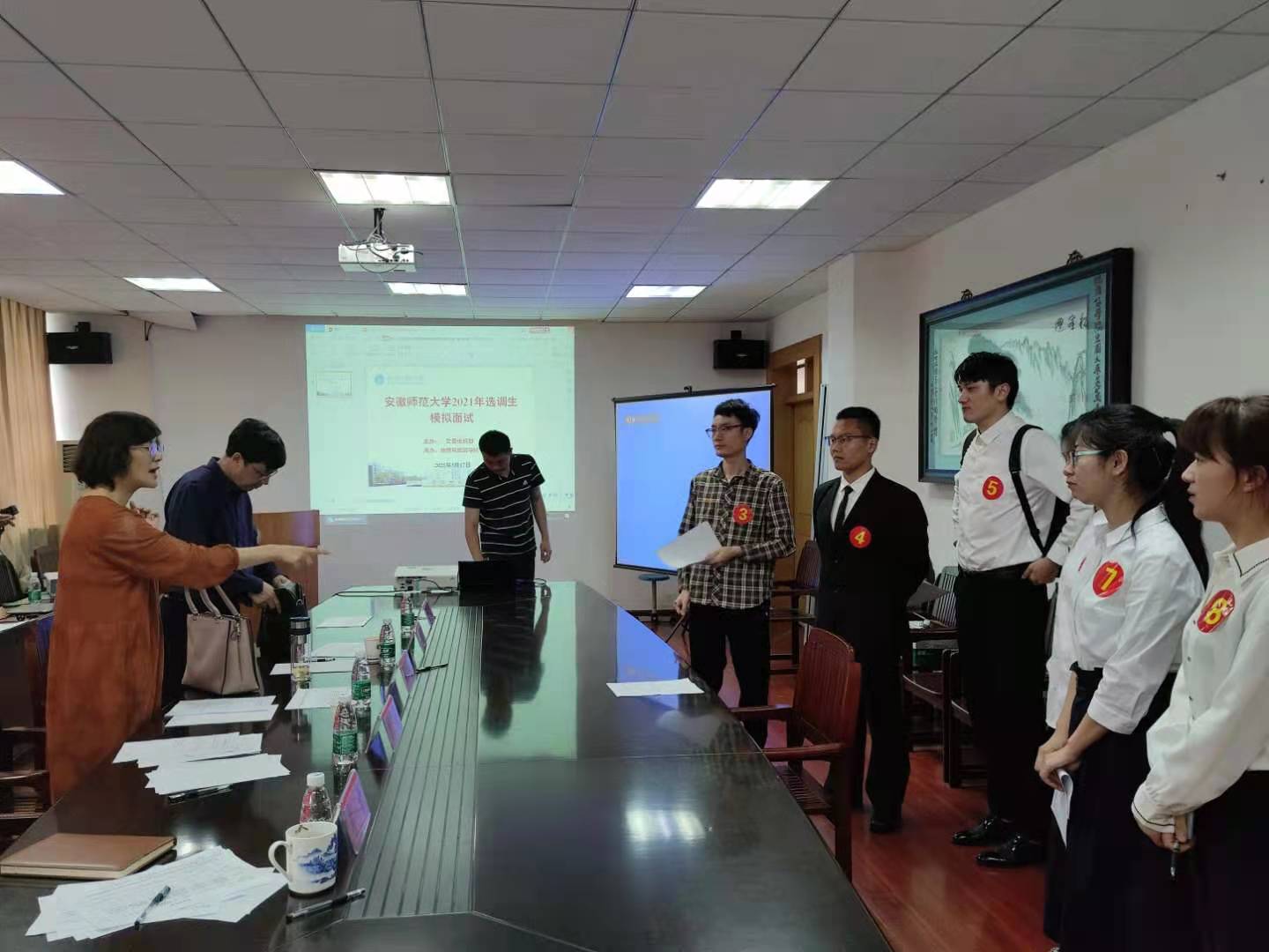本网讯(​英国365集团官网 韩红豆)学党史,办实事。为进一步提升公司毕业生选调生面试环节的竞争力,5月17日下午,由公司党委组织部主办、​英国365集团官网承办的2021年安徽省选调生模拟面试在​英国365集团官网行政楼三楼会议室举行。公司党委书记贾冠忠、经济管理公司副经理伍旭中、文公司副教授芮瑞、李定乾等专家应邀担任模拟面试考官,来自英国365集团官网、法公司、马克思主义公司、生命科学公司等公司入围安徽省选调生面试环节的考生代表参加了模拟面试,20余位备战2022年选调生、公务员考试的员工代表现场观摩学习。模拟面试由​公司党委副书记乔静主持。