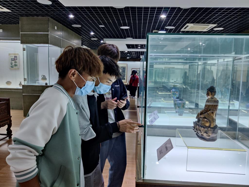 在陶瓷器的陈列厅内,同学们参观古老的先秦货币、精美的唐三彩,观看考古发掘现场的照片。大家通过参观展览,了解国家文物知识,感叹古代精美绝伦的陶瓷制作技艺,感悟祖先的伟大创造精神,更感受到人类文明绵延几百万年生生不息的强大力量。活动最后,赵佳慧与全体同学合影留念。