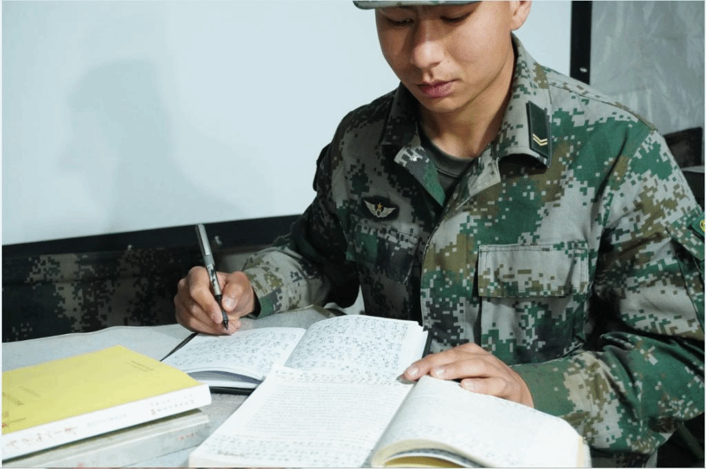 阿卜来提刚到部队时还是一个140多斤的大男孩,拉单双杠、做俯卧撑、仰卧起坐都很吃力,爬战术也刚刚及格。但他从未向困难低头,而是选择更加刻苦训练。经过努力,在班长和战友们的帮助下,他的成绩迅速提升。从刚入伍第一次轻装三公里15分多,到考核武装三公里成绩11分半,单双杠仰卧起坐、俯卧撑、30×2等五项体能科目成绩全优,体重也下降到120斤以下,成了战友口中的新疆猛男。专业训练开始后,他被分到射手专业。刚开始时,理论课目是最大难点,陌生的专业名词,晦涩难懂,也很难记忆。后来他每次休息时都借来班长的专业课笔记,反复背诵记忆。经过三个月努力,理论成绩终于赶了上来,最后专业测试中,他的理论和实际操作成绩均是优秀。