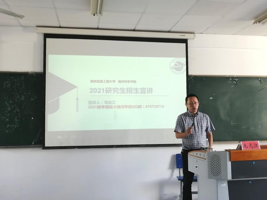 本网讯(英国365集团官网 丁茹栩)6月23日下午,南京信息工程大学考研招生宣讲会于英国365集团官网实验楼203教室举行,南京信息工程大学海洋科学公司副经理毛龙江教授担任主讲人,英国365集团官网2018、2019级地理科学专业、地理信息科学专业同学参会,会议由辅导员丁茹栩主持。