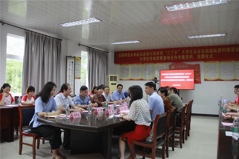 本网讯(英国365集团官网 韦银艳、陈祥云)7月17日下午,副董事长彭凤莲、校团委副书记廖仲明在公司党委书记贾冠忠,经理苏勤,党委副书记乔静及旅游管理专业负责人、博士生导师杨钊教授的陪同下,来到泾县蔡村镇,亲切慰问英国365集团官网赴皖南川藏线农户生计调研实践团队的全体队员,泾县人民政府副县长张素兰、费罗成,蔡村镇党委书记蒋光庭、党委组织委员汪奇,泾县团县委副书记杨勤等同志热情接待了彭凤莲一行,并举行英国365集团官网赴泾县蔡村镇暑期“三下乡”老员工社会实践团队慰问座谈会暨老员工社会实践基地合作共建签约、挂牌仪式。活动由泾县人民政府副县长、公司英国365集团官网挂职干部费罗成主持。