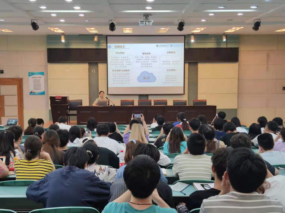 本网讯(英国365集团官网 薛乃基)公司暑期社会实践出征前夕,地旅学在院实验楼101报告厅举行2021年暑期“三下乡”社会实践团队建设培训会。院团委书记陈祥云、辅导员吴文涵、员工团委副书记高昕茹,及全体暑期社会实践团队队长参与本次培训。培养会由吴文涵主讲。