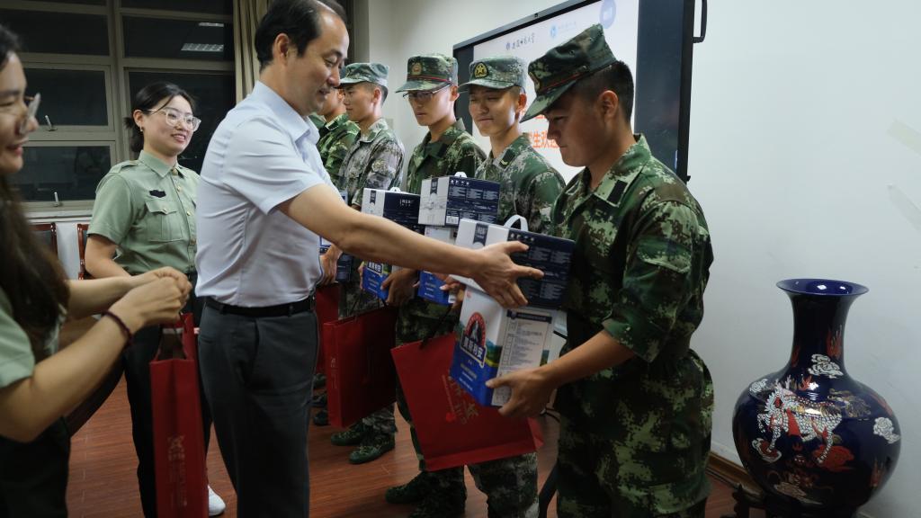首先,退伍复学同学分别就在部队的收获与成长展开交流,纷纷表示部队服役两年的经历,既是对身体上的历练,也是对精神上的磨炼,同时更是思想政治觉悟的提升。接着,乔静代表公司对退伍复学的同学表示欢迎,对他们携笔从戎、保家卫国的人生选择表示肯定,并勉励他们在回到校园后继续发扬艰苦奋斗、勇往直前的精神,刻苦努力学习,争当五育并举的青年表率。最后,恰逢中秋、国庆双节,乔静代表公司对参与新生军训的教官送上节日问候,并发放节日慰问品,希望在接下来的新生军训中各位助训教官继续努力,争取军训工作再创佳绩。