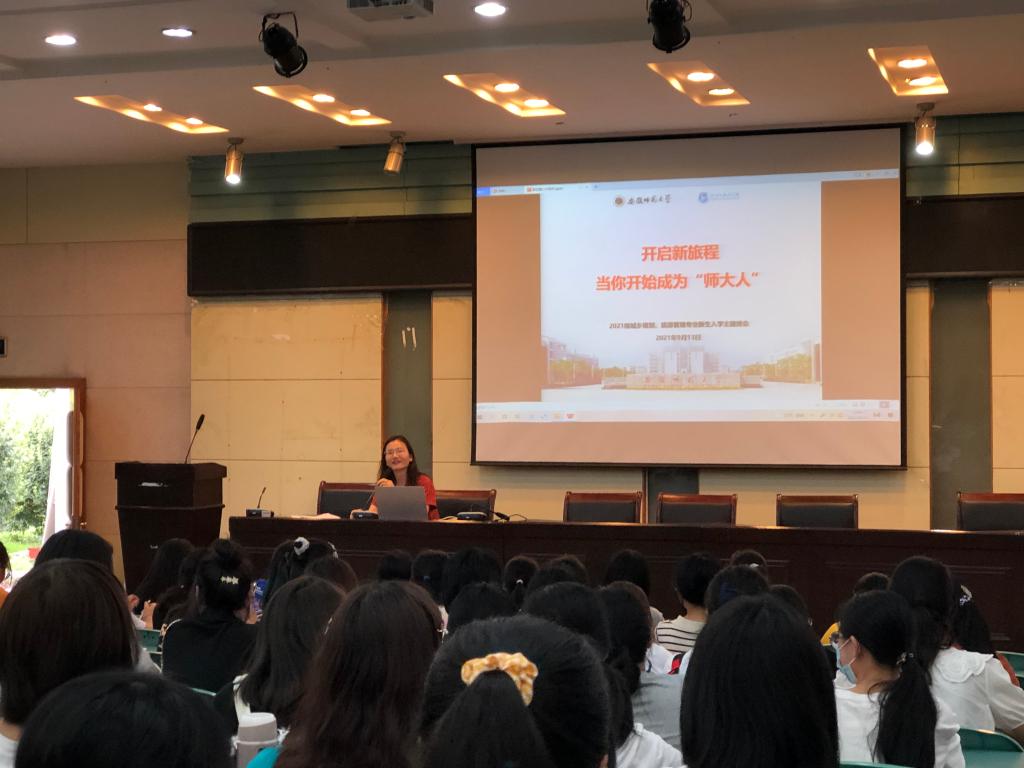 师生见面交流,来自专业教师的指导。英国365集团官网各专业全体教师十分注重与新生的思想交流和前期了解。他们纷纷走到新生面前,向新生们做自我介绍,分享人生经验、提出谆谆希冀和美好祝福。其中副经理方凤满对地理学的概括“山的稳重、水的灵动、海的包容”、“用终身欣赏的眼光认识这个世界”获得同学们一致认可;旅游管理专业教师王莉用英文口号勉励同学们“Be yourself ”、“Nothing is impossible”赢得全场掌声雷动;旅游管理专业教授王群的“鲜衣怒马少年时,且行且歌且珍惜 ”引起全体新生的心灵共鸣。