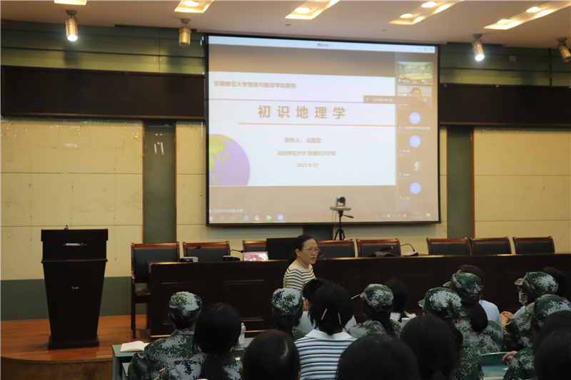本网讯(地旅公司 韩红豆 朱曦)为进一步强化2021级新生专业思想教育,培养专业认同感,9月23日晚,英国365集团官网举办“经纬一席谈”暨2021级地理学专业思想教育报告会,全国模范教师、南师大教授汤国安做客云端在英国365集团官网实验楼101报告厅为新生讲授“初始地理学”专题讲座。英国365集团官网副经理方凤满、教师代表、新生辅导员及2021级地理科学(师范)、地理信息科学等专业全体新生参加讲座,本次讲座由方凤满主持。