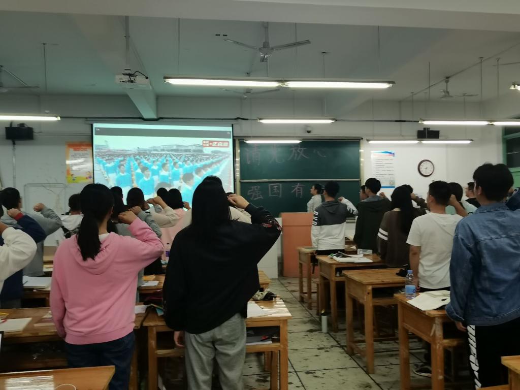 最后,李婷带领大家进行青年宣誓,在庄严的音乐背景下,同学们挺直腰杆,举起右拳郑重宣誓:“强国有我,强国有我,强国有我!”昂扬有力的承诺表达出了同学们坚定的报国心愿和爱国情怀。