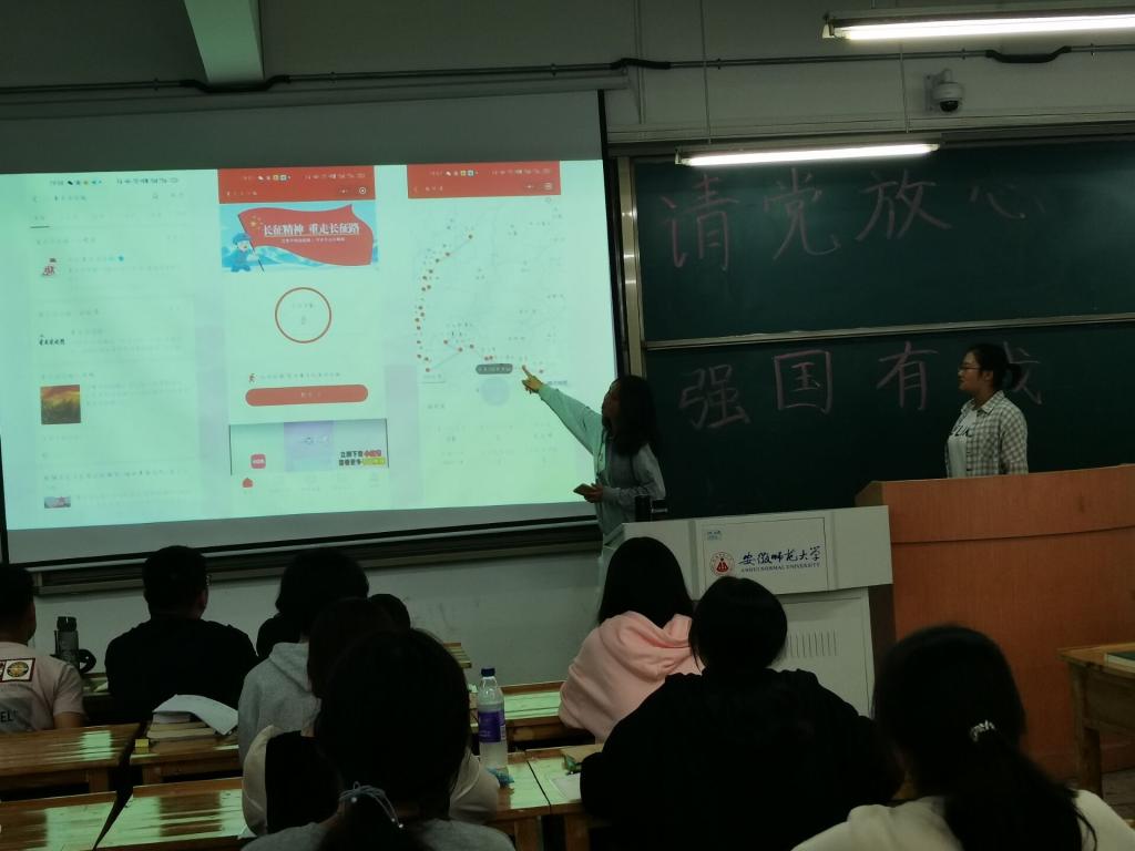 首先,李婷为大家播放了《那年那兔那些事儿》的片段,通过动画的形式向同学们展示了那个战火纷争的年代的艰险与感动,展现了党的历史和顽强拼搏的精神。随着一幕幕片段的闪过,一次次过往的艰苦与现今的繁华画面对比,同学们的神情愈发坚定,对党和国家的热爱与归属感油然而生。