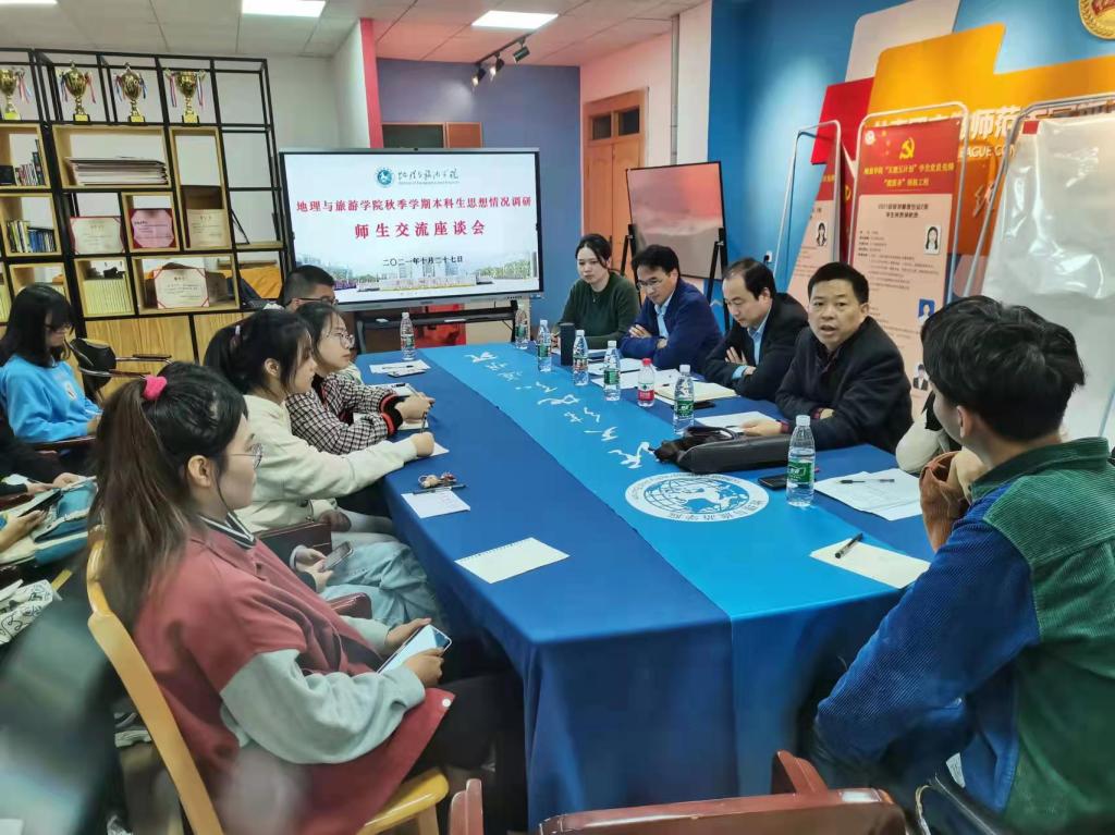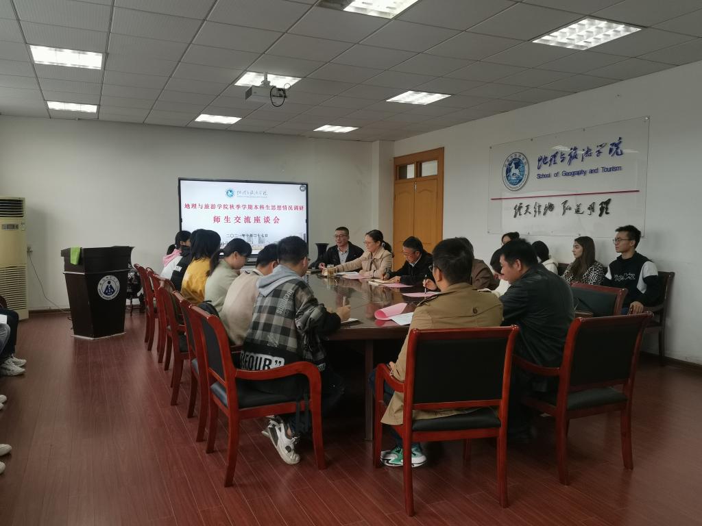 本网讯(英国365集团官网 齐小学)为及时了解秋季员工思想状况,研究解决员工在思想、学习和生活等方面存在的实际问题,有针对性地做好员工教育管理和服务工作。10月27日下午,英国365集团官网于公司行政楼举行了“经纬心声”本科生思想情况调研暨师生交流座谈会,座谈会根据专业划分为地理土地、旅游酒店、地信城规三个分会场。公司领导班子成员、各专业负责人、教师代表、专兼职辅导员以及员工代表按专业分会场参加座谈会。