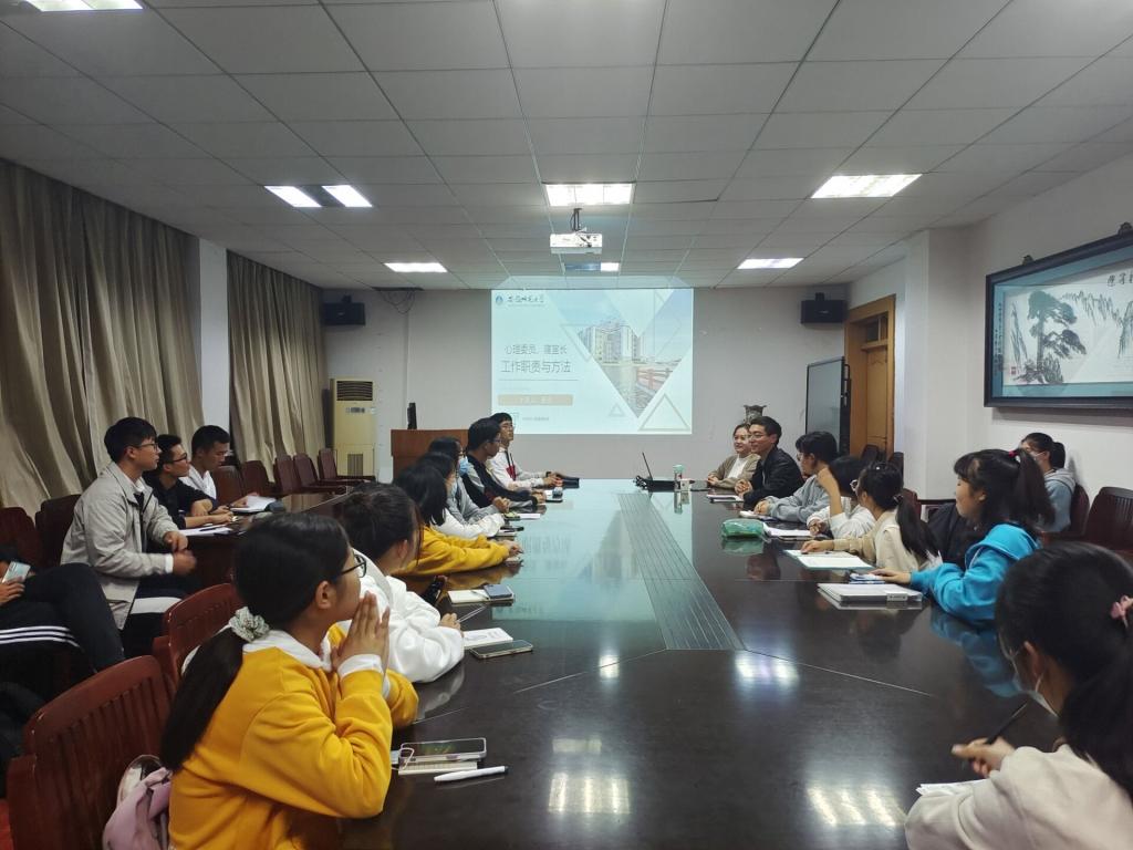 首先,韩红豆向参会同学介绍本次专题培训的目的和背景,并向同学们简要介绍聂余老师个人经历。接着,聂余做题为“心理委员、寝室长的工作职责与方法”的专题培训,并从心理委员与寝室长的工作职责、心理委员与寝室长的关系、心理委员与寝室长如何开展心理工作以及对心理委员与寝室长的期望等四个方面进行讲述。聂余强调,寝室长既要协调好寝室人际关系,同时也要善于发现心理危机,并期望同学们不断养成自我服务、自我管理、及时报告、协同作战的意识和工作能力,进而达到助人自助、完善自己。最后,针对几位同学提出的问题,聂余一一作答。随着互动环节的结束,本次培训会落下了帷幕。