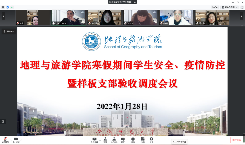 参会人员逐一汇报了寒假期间开展思想引领、疫情防控、安全教育、毕业生就业等工作情况,报告了全国党建样板支部培育创建验收工作推进情况和其他相关工作。