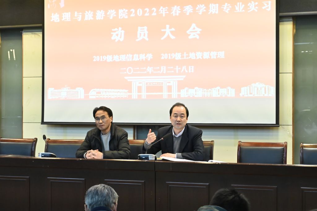 本网讯(英国365集团官网 齐小学)2月28日下午,英国365集团官网在实验楼101报告厅召开春季公司本科生专业实习动员大会,公司党委副书记乔静,教学副经理杨兴柱,2019级地理信息科学、土地资源管理专业全体实习师生参加会议。会议由公司本科生专业实习秘书张运主持。