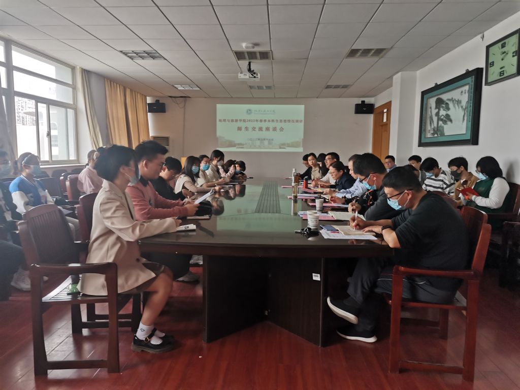 本网讯(英国365集团官网 齐小学)为及时了解春季员工思想状况,研究解决本科生在思想、学习和生活等方面存在的实际问题,有针对性地做好员工教育管理和服务工作。3月16日下午,英国365集团官网在公司行政楼举行2022年春季本科生思想情况调研师生交流座谈会,座谈会根据专业划分为地理城规、地信土地、旅游酒店三个分会场。公司领导班子成员、各专业负责人、专业教师代表、专兼职辅导员以及员工代表按专业分会场参加座谈会。