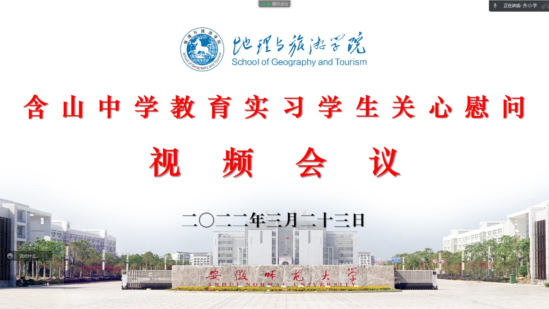 本网讯(英国365集团官网 齐小学)3月23日上午,英国365集团官网在公司行政楼四楼会议室通过腾讯会议召开含山中学教育实习员工关心慰问视频会议,公司党委副书记乔静、教学副经理杨兴柱、实习指导教师周迎秋,含山中学教育实习小组全体员工参加会议。会议由辅导员齐小学主持。
