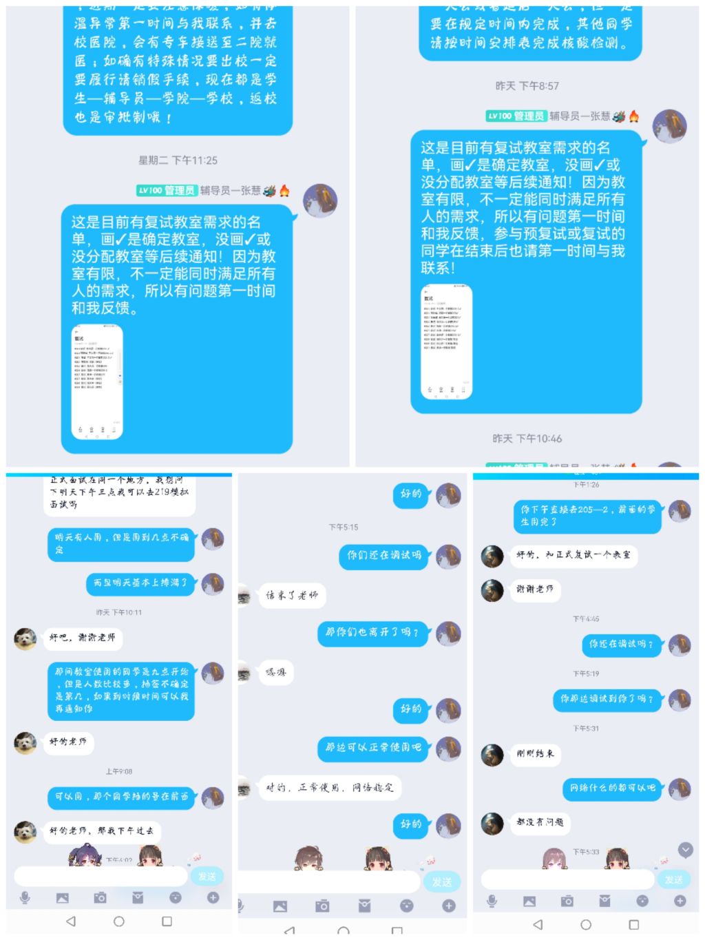 综合疫情防控常态化要求以及考研学子线上复试实际需求,3月21日,英国365集团官网完成了6间考研复试教室的调配并投入使用,临近周末,线上复试需求增多,不仅新增了2间备用教室,帮扶老师和毕业班辅导员也纷纷表示可以将自己的办公室提供给员工,全院同步协商稳步推进考研学子预复试及正式复试工作。