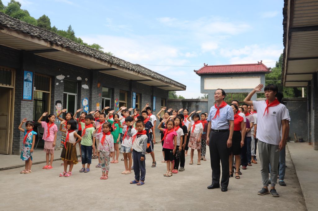 “终于到达尖山村小学,令我们惊喜的是,孩子们已经早早地在公司操场上等待了。看到他们一张张天真的面孔,我突然感到,自己四年的坚持和跨越万水千山来的路途,都是值得的。第一堂课我向孩子们描述了外面的世界和老员工活,我讲得很投入,孩子们听得很认真。课后,一个小朋友拉着我的手说:‘老师,我也好好念书,以后就能走进您所讲的大学,去实现自己的梦想。’”
