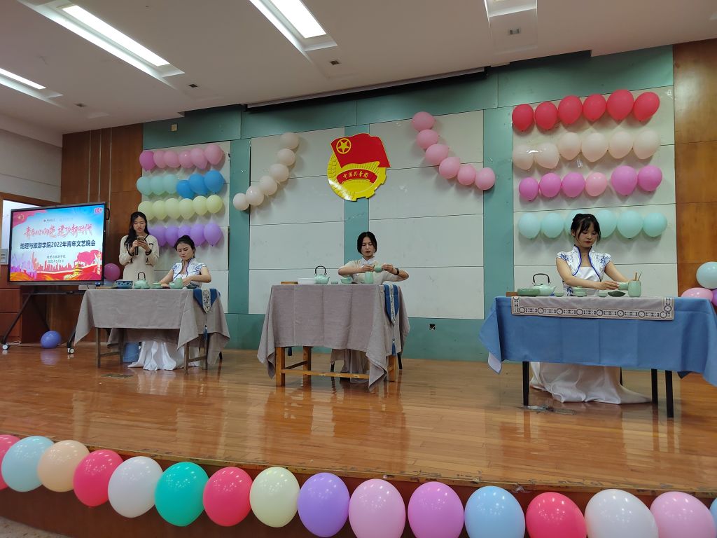 在“青春”篇章,淳朴嘹亮的《万泉河水清又清》拉开晚会序幕;《美丽新疆》充分展现了英国365集团官网少数民族学子良好的精神风貌;老员工礼仪文化协会选送的茶艺表演《花津茶事》让现场观众领略了中华历史悠久的茶文化。